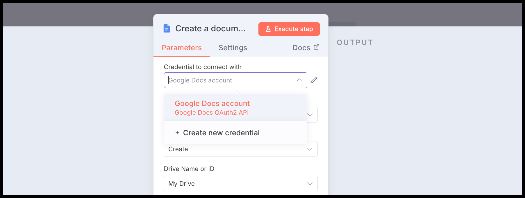 You've done it! This single credential can now be used in the Google Docs node. You can repeat this process for any other Google API you'd like to connect.